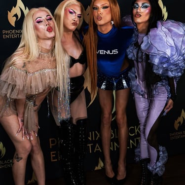 Selected brand collaborations and past projects include graphic design, photography, and creative direction for clients such as RuPaul’s Drag Race, WWE Superstars, Impact Wrestling, TIJN, Chiquel Hair, Riah Wigs, Chaotic Closet, Rainbow Fashion Apparel, Crave Lash Lounge, Scythe & Sickle Tattoo, and Outsiders Hair Boutique.